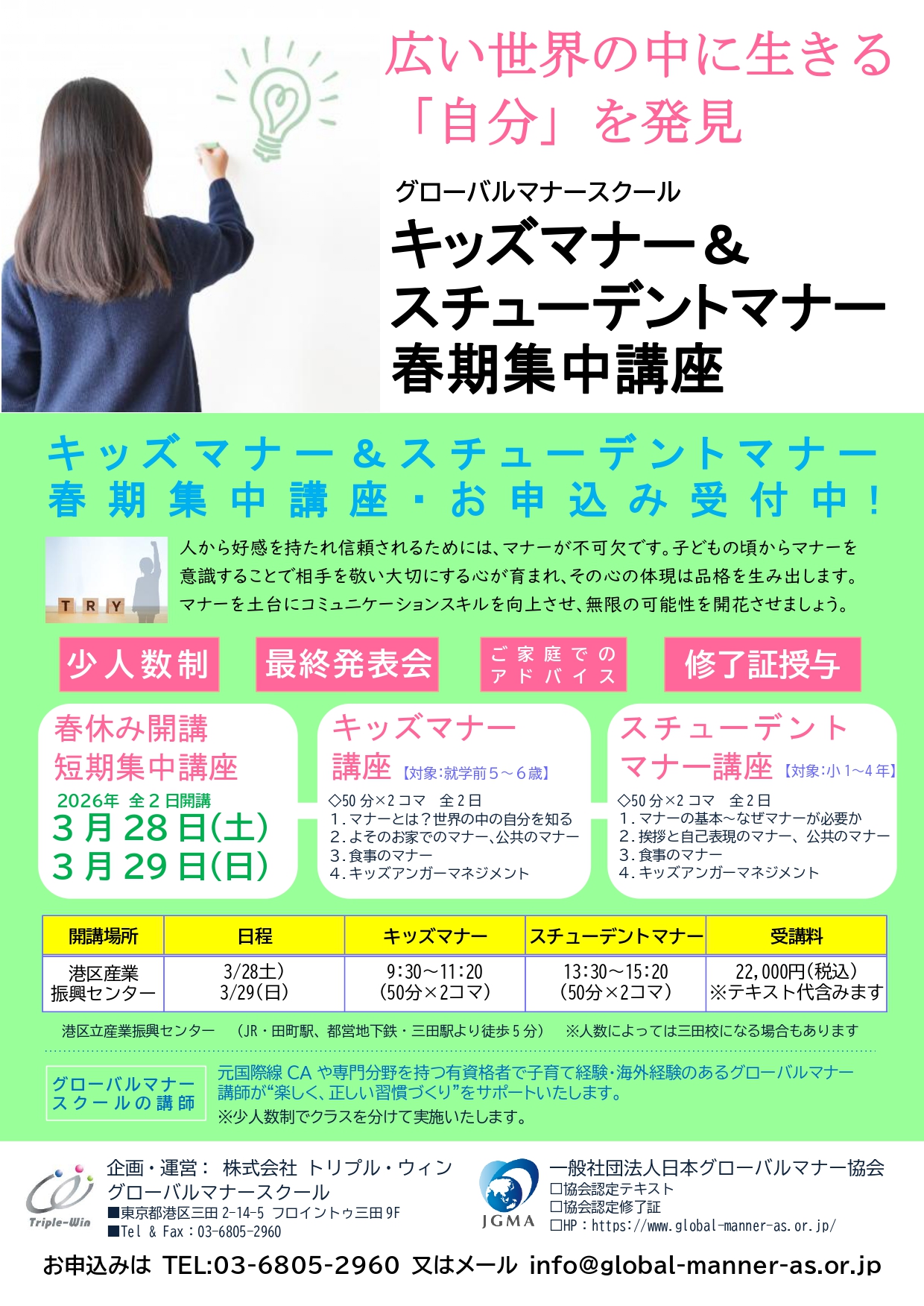 キッズマナースチューデントマナー春期集中講座 ※お申込み受付中
